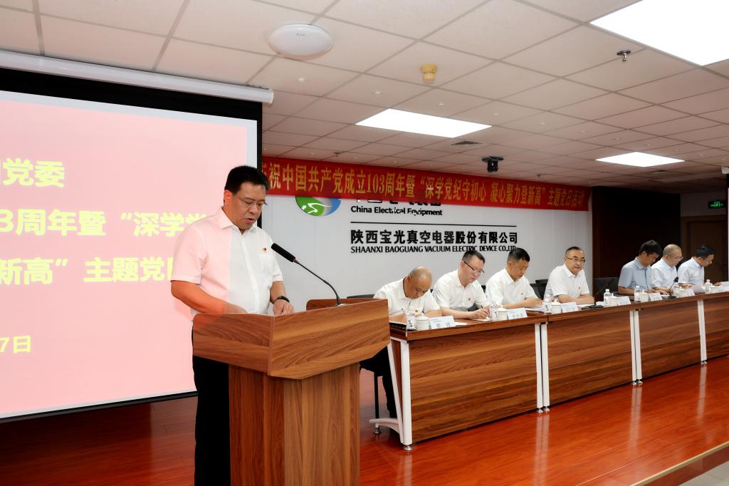 6月27日,寶光集團黨委舉辦慶祝中國共產黨成立103 周年暨“深學黨紀守初心 凝心聚力登新高”主題黨日活動,深入貫徹落實習近平新時代中國特色社會主義思想及黨的二十大精神,進一步弘揚偉大建黨精神,鞏固拓展主題教育和提升黨紀學習教育成果,繼承和發揚黨的光榮傳統,引導激勵基層黨組織和廣大黨員干部職工自覺擔當、主動作為,以更昂揚的姿態、更扎實的措施、更顯著的成效為提前一年完成“十四五”目標貢獻力量。