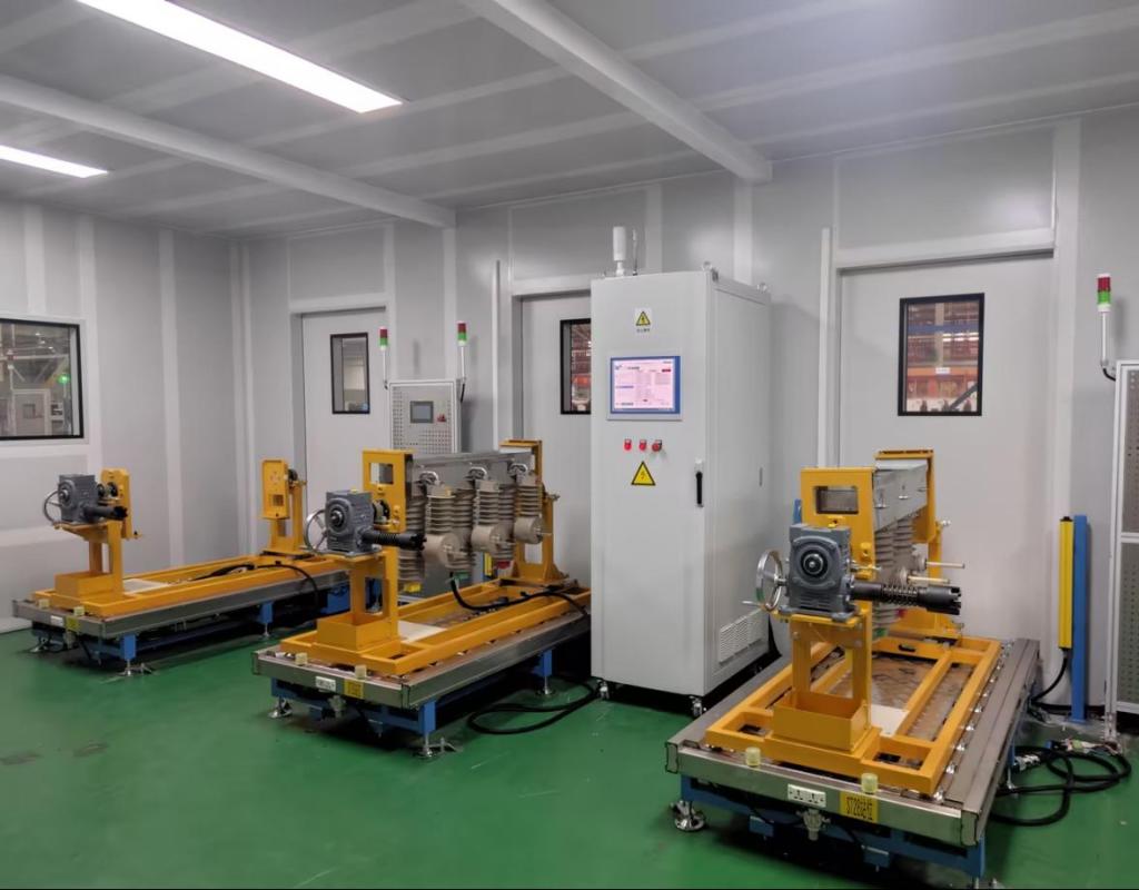 該產線由戶外柱上開關零部件裝配、關鍵性能檢測以及一二次融合成套設備性能檢測組成,智能化、自動化水平高,可以滿足國網一二次融合產品的生產及性能檢測。