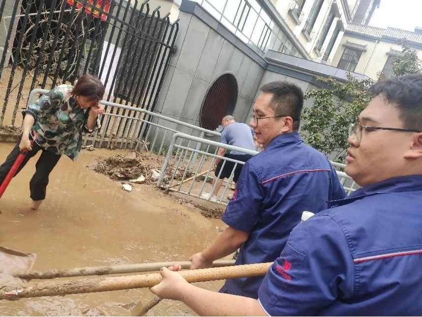 在志愿者們的感染下,更多的小區居民也自發的投入到了小區的清理工作中,志愿者們與小區居民一起作戰,同時換班進行鏟泥,工作有條不紊,僅僅3個小時就將兩棟樓門前路面上的淤泥清理干凈。