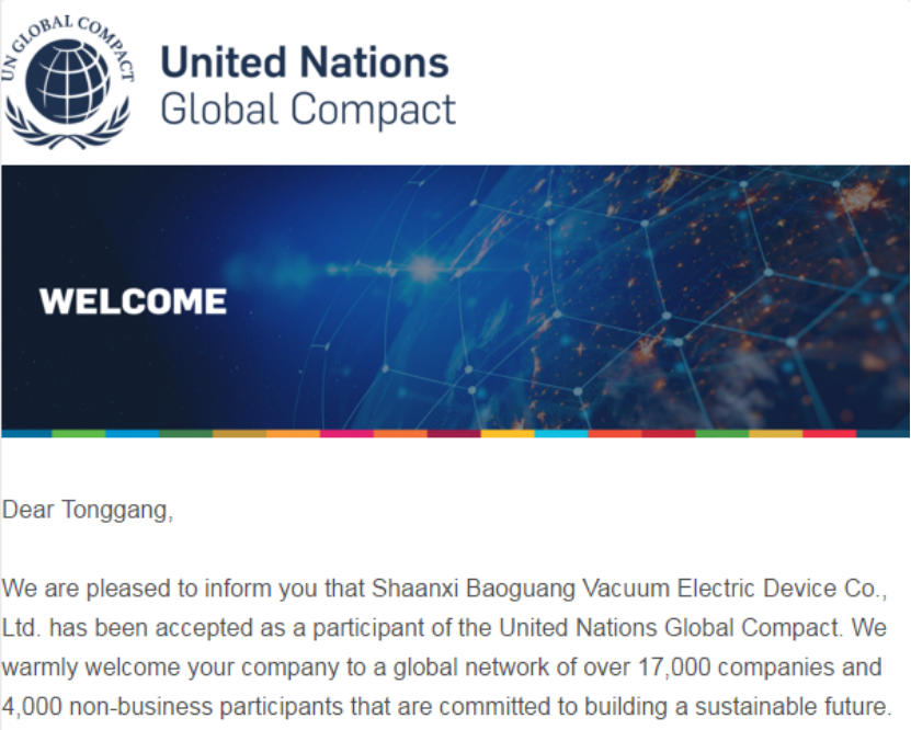 近日,寶光股份正式批準加入聯合國全球契約組織(United Nations Global Compact,簡稱UNGC),標志著寶光股份在提升國際品牌形象、深化企業社會責任實踐方面邁出了堅實的一步。