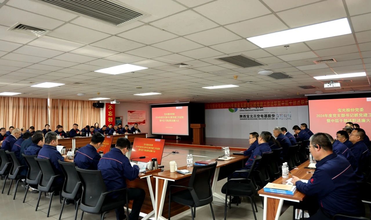 為深入貫徹黨的二十大和黨的二十屆三中全會精神,進一步加強中層干部隊伍建設,提升中層干部的執行力,激發公司內在活力,提升企業管理水平,落實全面從嚴治黨有關要求,全面、客觀、公正、準確地考核干部政治業務素質和履行崗位職責的情況,促使全體干部更好地謀劃2025年工作思路,研究創新舉措,助力企業高質量發展。12月20日,寶光集團黨委及所屬企業召開了2024年度基層黨組織書記抓黨建工作述職暨中層干部述職述廉會。在寶光集團黨委、西電寶雞電氣黨委2024年度基層黨組織書記抓黨建工作述職暨中層干部述職述廉會上,寶光集團(西電寶雞電氣)黨委書記、董事長謝洪濤出席會議并做總結講話,對2025年工作提出新的期望和要求。寶光集團(西電寶雞電氣)黨委副書記、總經理孫博主持會議并就落實會議精神提出具體要求。
