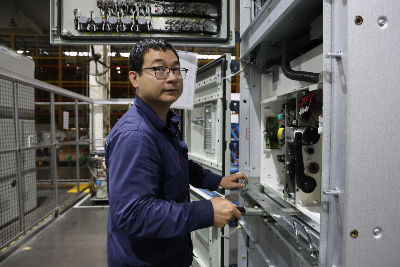 在創新方面,他善于在工作中總結經驗、優化方法。近年來,他累計提出精益提案百余條,均被公司采納。當被問及最自豪的事,他輕拍身旁的KYN61開關柜說道:“通過經驗積累,我改良了其后實心軸的裝配與端封板存放方式,使單臺開關柜裝配效率提升約30分鐘。”在班組中,他積極分享經驗、開展培訓,經其悉心指導,多名組員已能獨立完成從裝配、調試到問題處理及收尾的全流程工作。