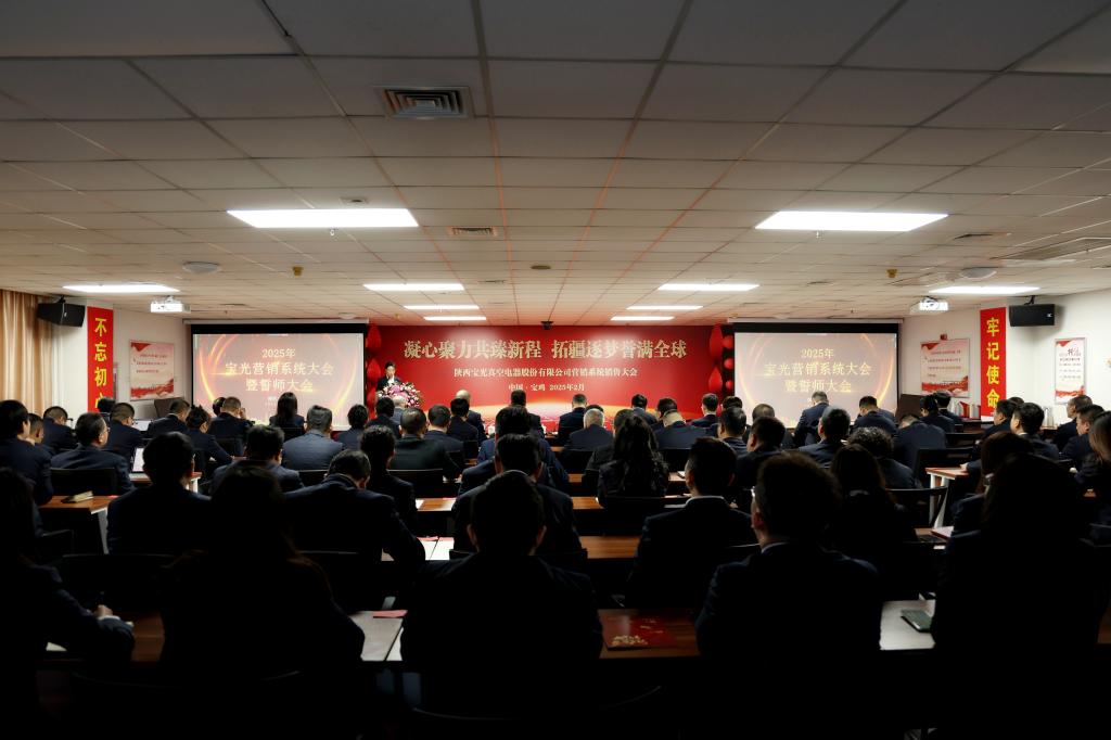 2月8日,寶光股份召開2025年銷售工作會議暨誓師大會。會議以習近平新時代中國特色社會主義思想為指導,深入貫徹黨的二十大和二十屆二中、三中全會精神,認真落實公司2025年工作會議各項要求,全面總結2024年市場營銷工作,分析當前形勢,安排部署2025年工作,為新一年的銷售工作吹響了奮進的號角。寶光股份黨委書記、董事長謝洪濤,寶光股份黨委副書記、總經理劉壯出席會議并講話。