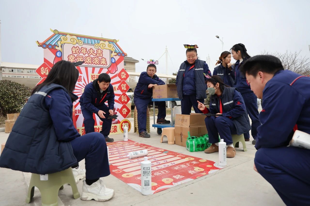 “蛇來運轉”、“幸運滾滾樂”、“畫蛇添?!钡扔螒騾^同樣人氣爆棚。套圈處擺放著琳瑯滿目的獎品,每個人都全神貫注地盯著心儀的獎品,摩拳擦掌,躍躍欲試。參與者們從工作人員手中接過幾個圈圈,手臂一揮,圈圈如飛燕般輕盈地飛了出去,在空中劃出一道道優美的弧線。人群中爆發出陣陣呼喊:“套中!套中!”然而,圈圈卻調皮地在獎品邊緣擦過,引得眾人一陣惋惜?,F場氣氛跌宕起伏,充滿了歡聲笑語。濃濃的節日氛圍和團圓的喜悅彌漫在公司每一個角落。所屬寶光股份拔河比賽現場,大家鼓足力氣,加油聲此起彼伏,繩子中間的紅色標記在雙方之間來回移動,兩撥人馬難分勝負。再將目光移到所屬西安寶光智能投壺游戲來,只見一支羽箭在空中劃出一道優美的弧線,穩穩地落入壺中,叫好聲響成一片。